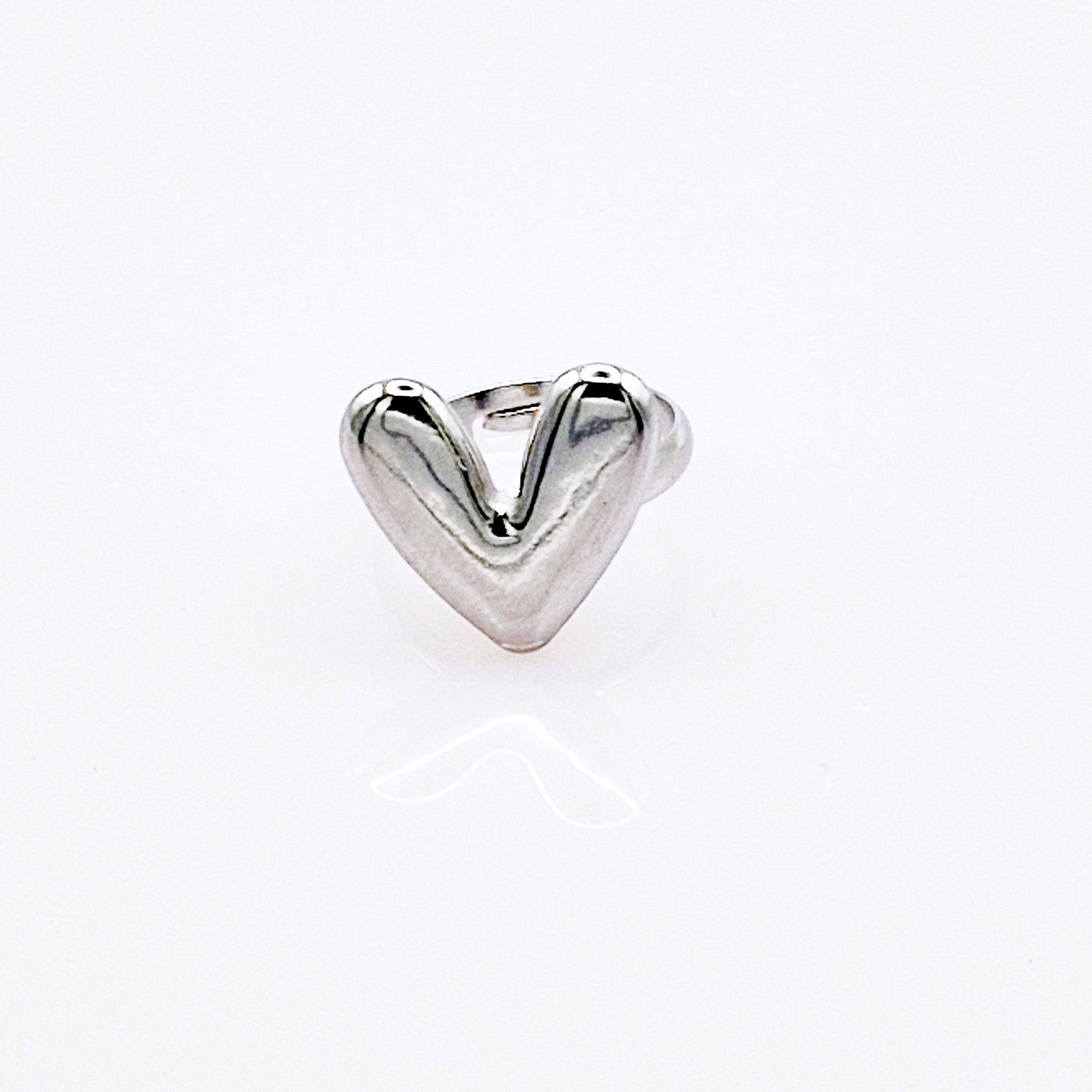 El anillo Corazón Valiente combina ternura y presencia en un diseño que no pasa desapercibido. Con un gran corazón plateado de acabado brillante y base ajustable, es ideal para quienes llevan el amor por bandera.
