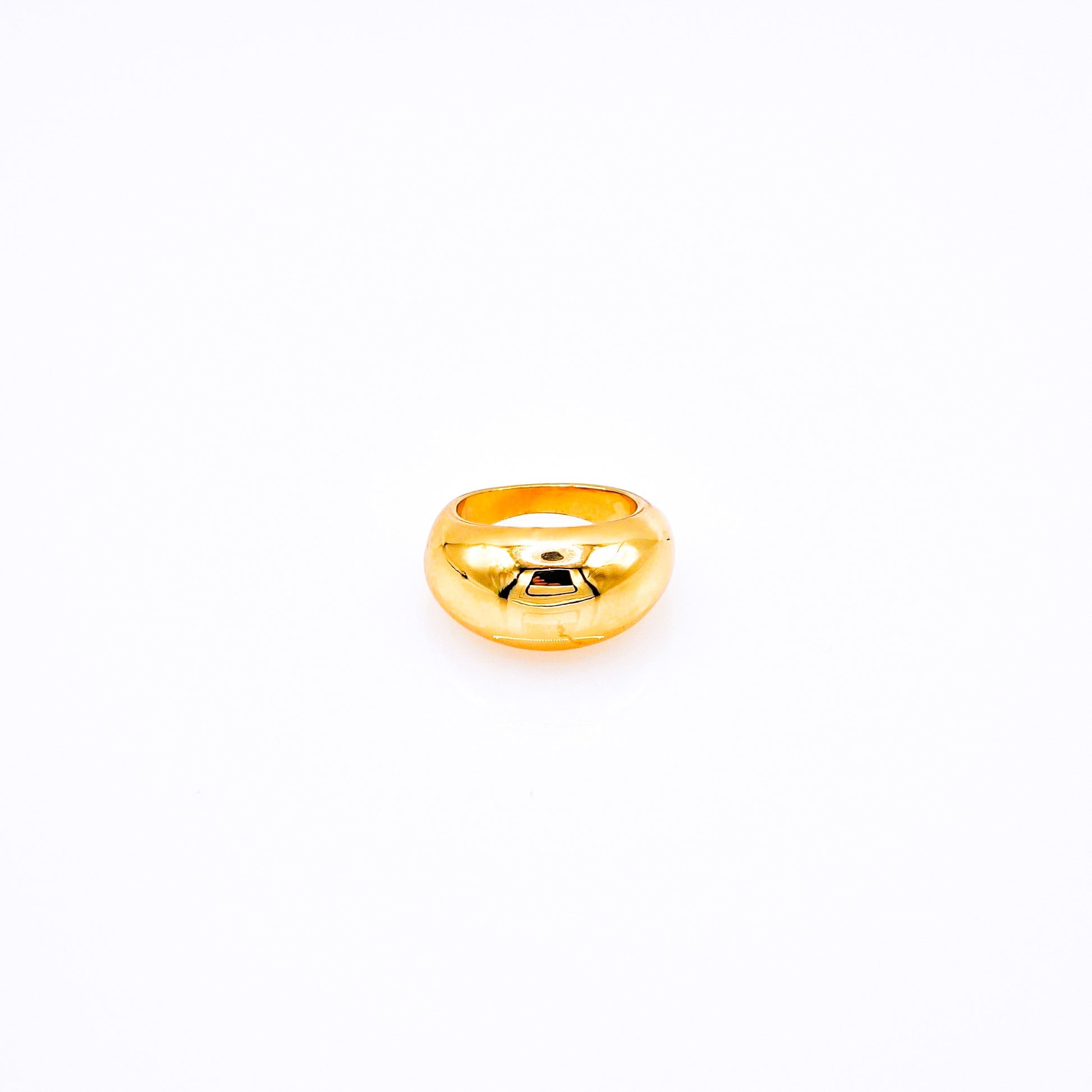 Anillo Dorado de diseño abombado con acabado brillante tipo espejo. Su estilo voluminoso aporta un toque moderno y sofisticado, ideal para destacar cualquier look con elegancia.