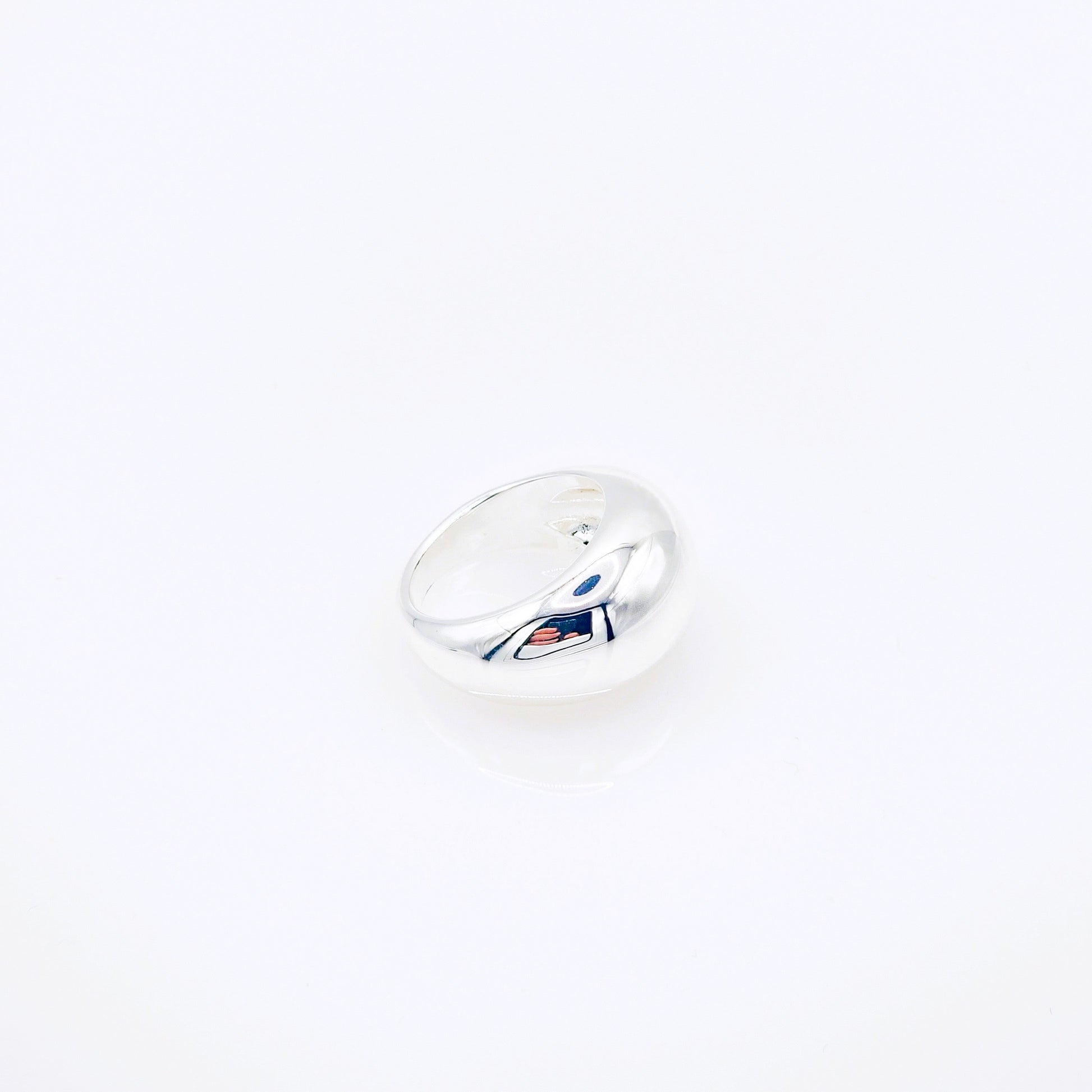 Anillo plateado de diseño abombado con acabado brillante tipo espejo. Su estilo voluminoso aporta un toque moderno y sofisticado, ideal para destacar cualquier look con elegancia.