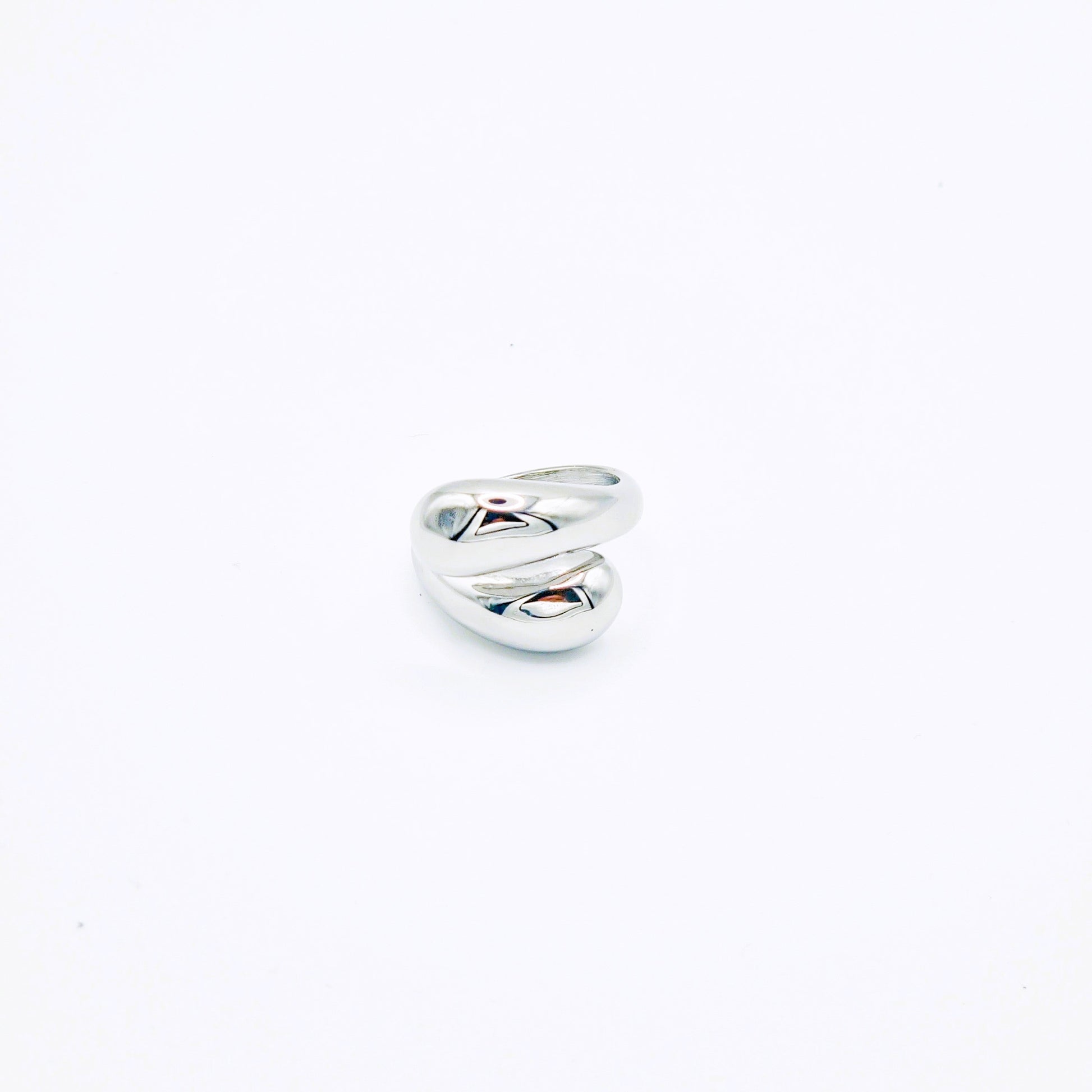 El anillo Gota Plateada es una joya escultural y moderna que atrae todas las miradas. Su diseño abierto con extremos redondeados evoca la forma de una gota de agua en movimiento.