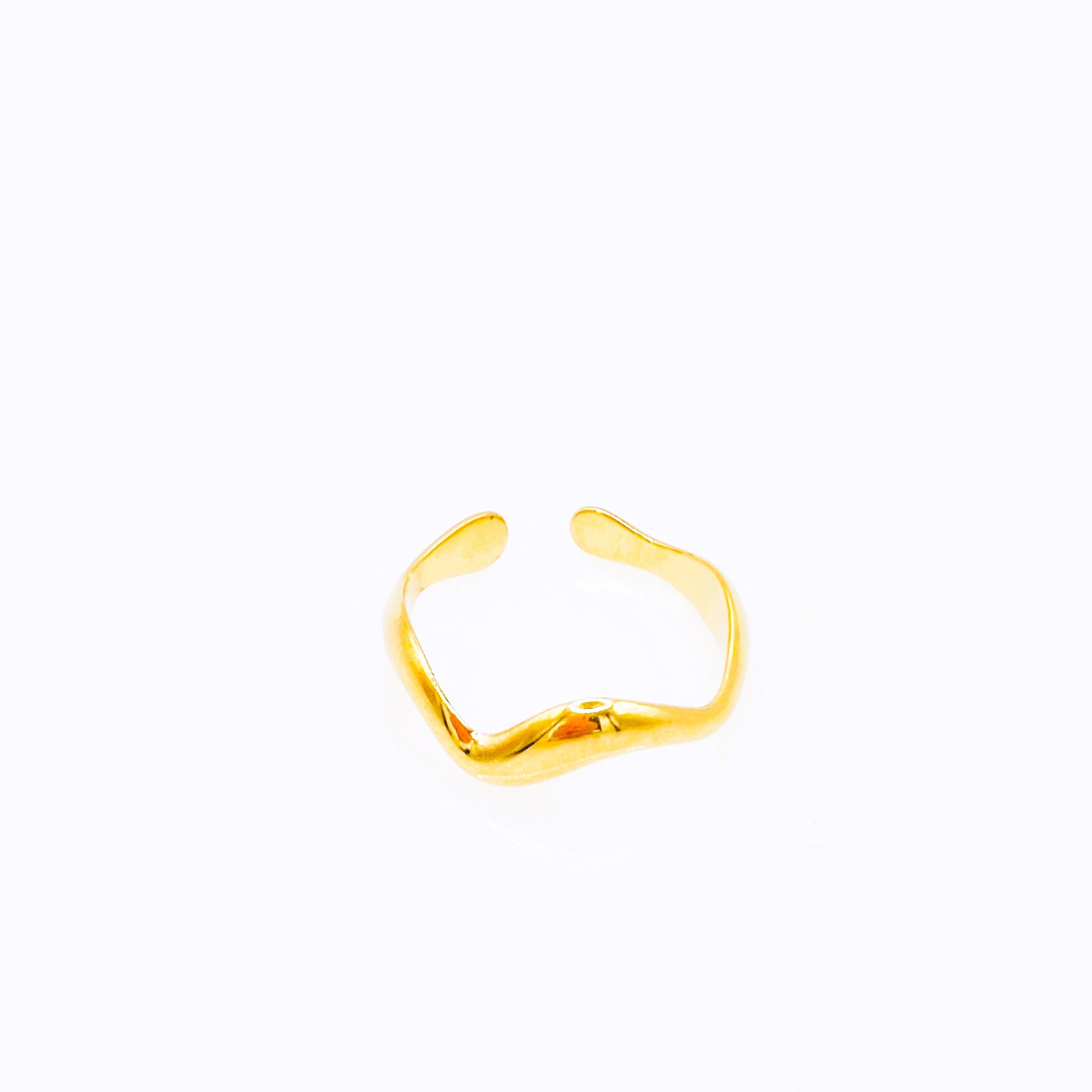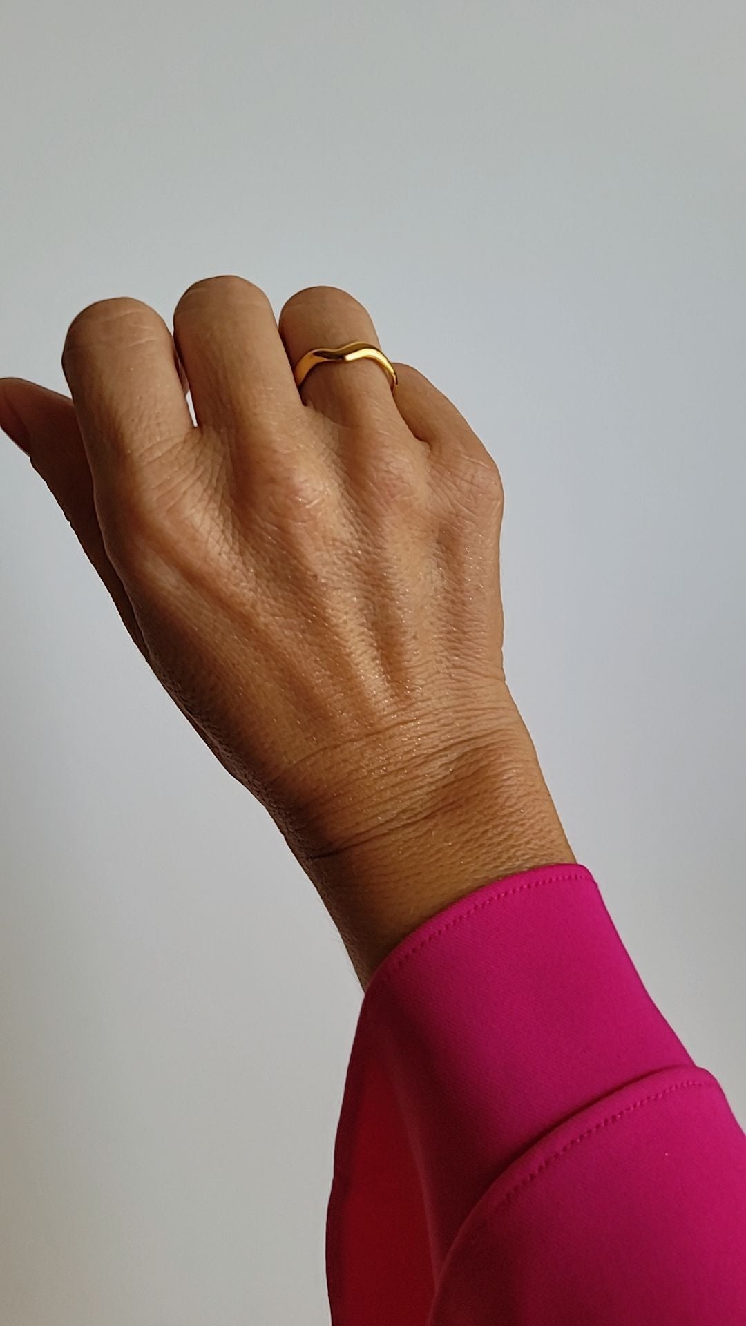 El anillo olas doradas es pura elegancia en movimiento. Su forma ondulada y sutil crea una silueta delicada que se adapta perfectamente al dedo.