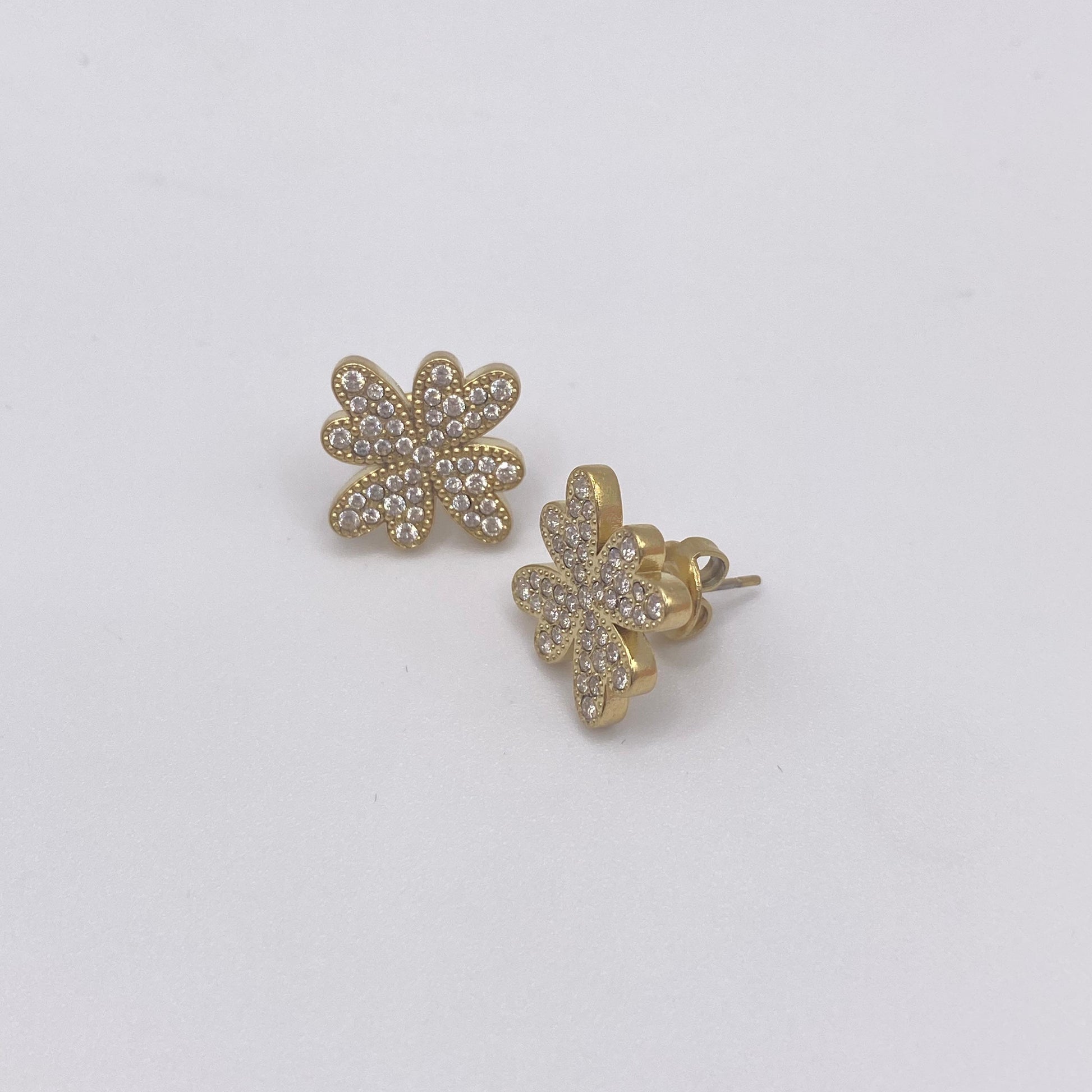 Un diseño delicado y luminoso inspirado en la magia del trébol. Estos pendientes y anillo de acero inoxidable dorado con circonitas aportan un toque delicado y femenino, perfecto para cualquier ocasión.