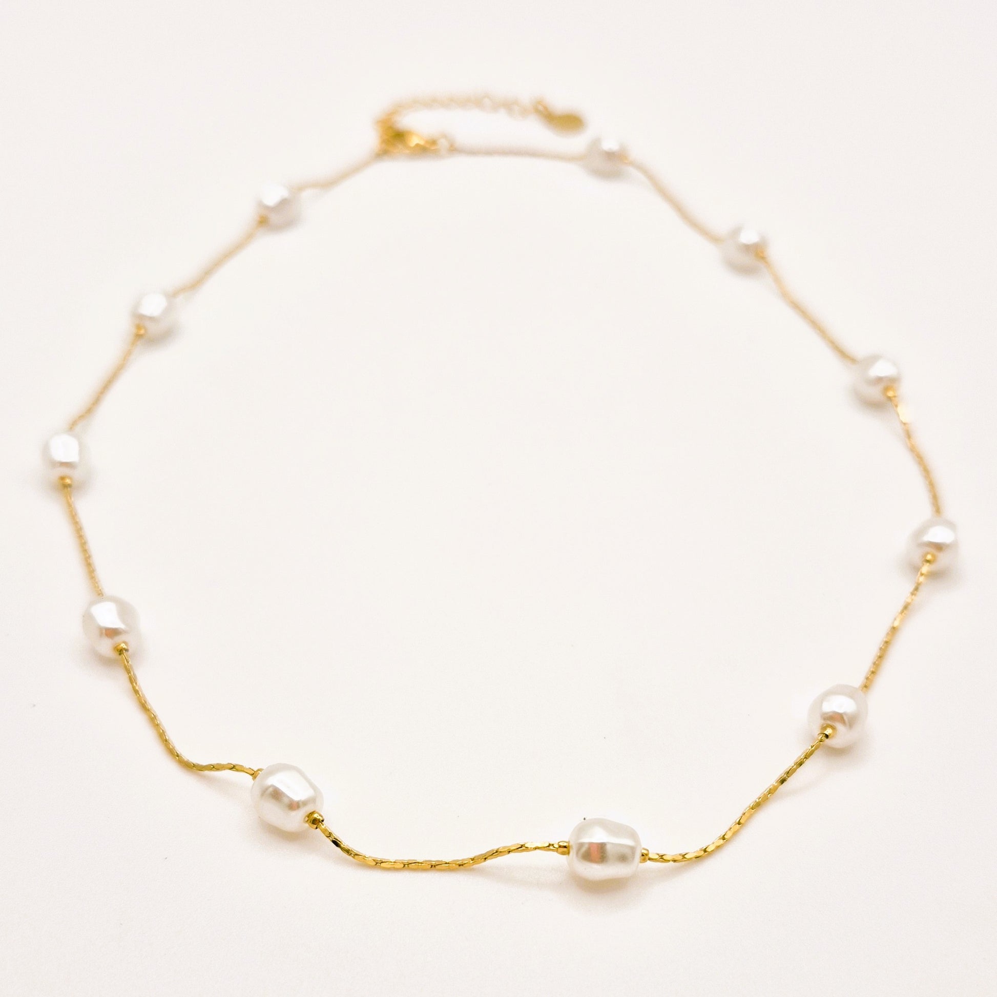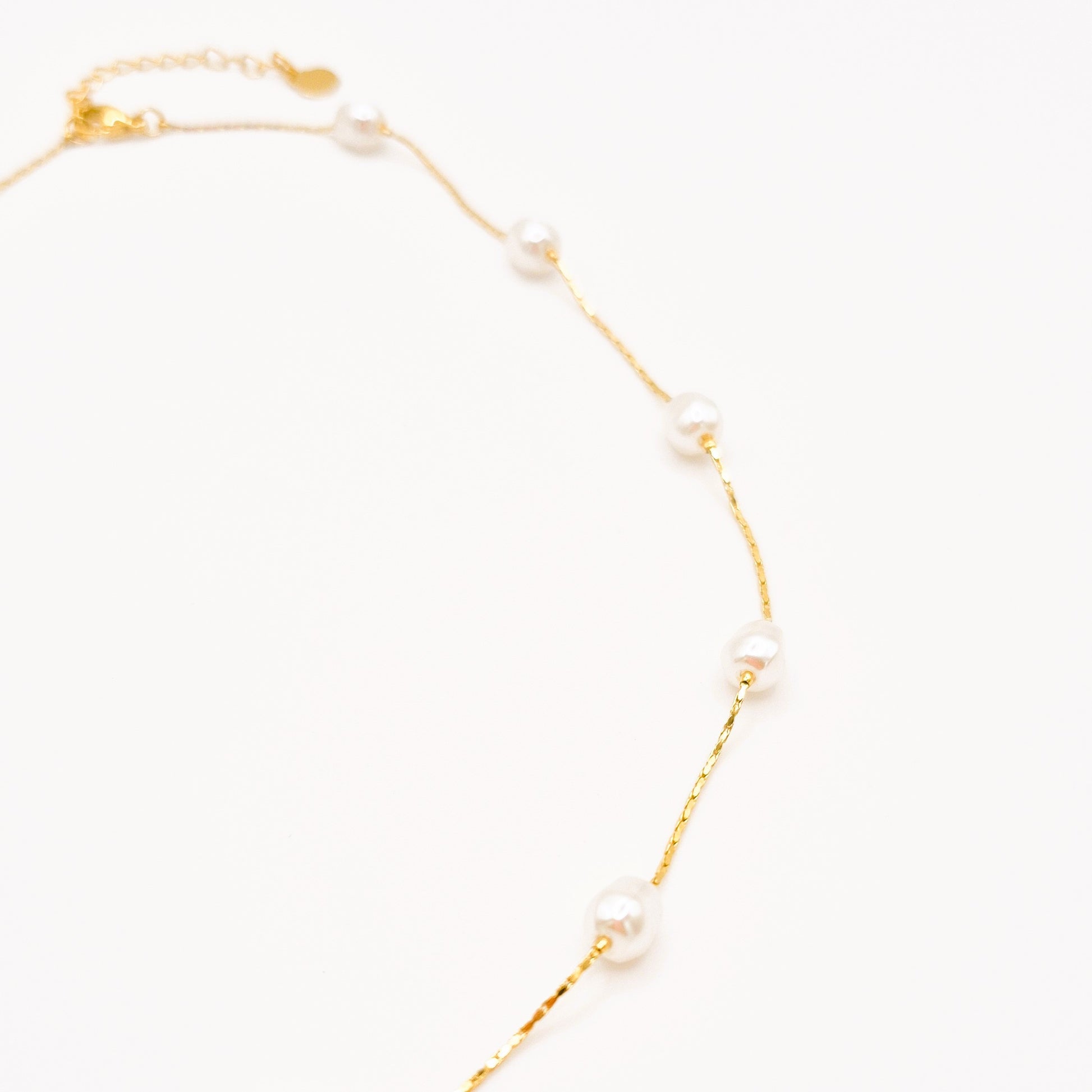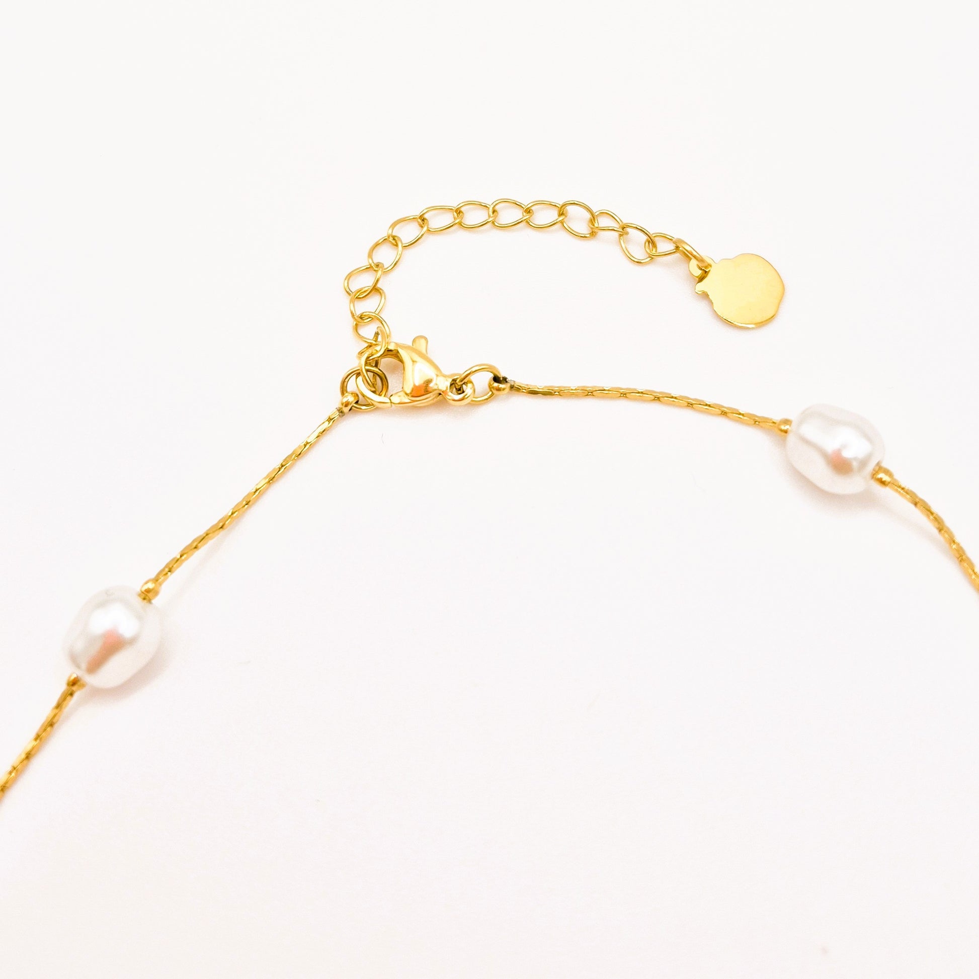 Minimalista y femenina, nuestra Gargantilla Perlas de Luz combina la delicadeza de las perlas con el brillo sutil de su cadena bañada en oro.