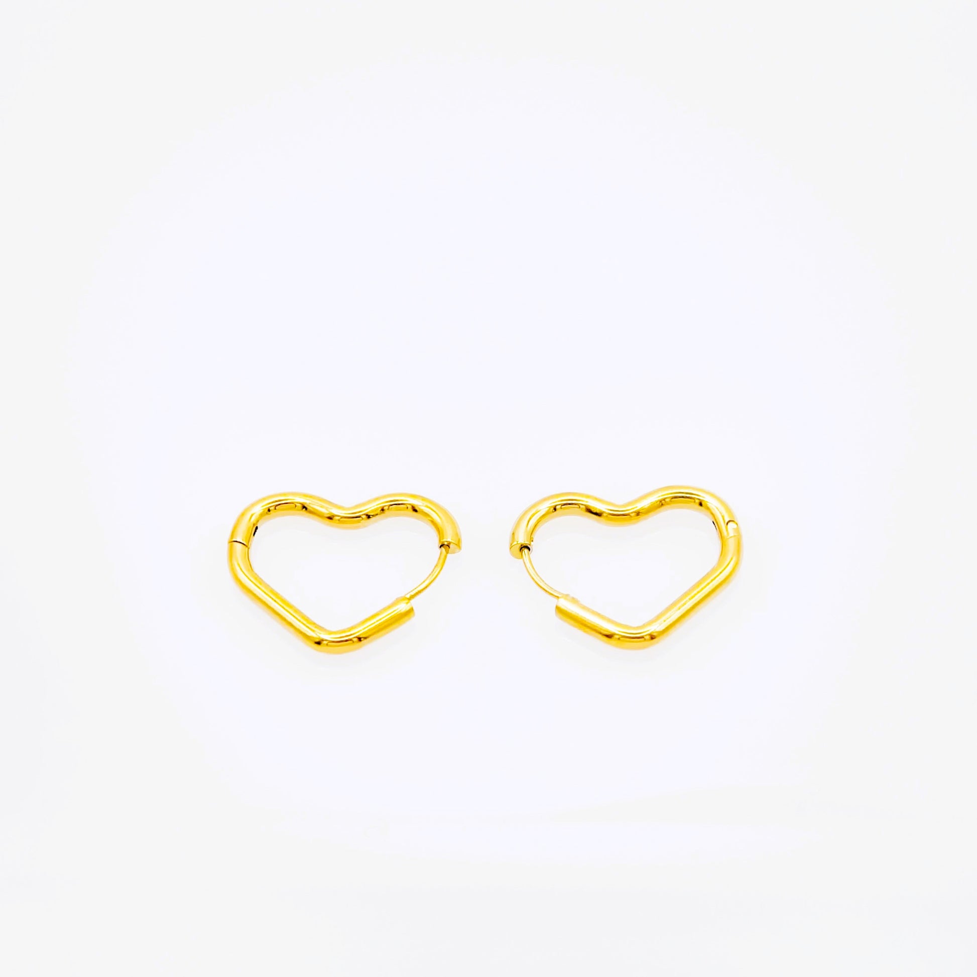 Pendientes dorados en forma de corazón estilizado, fabricados en acero inoxidable con baño en oro. Su silueta minimalista y original los convierte en el complemento ideal para darle un toque moderno y romántico a cualquier look.