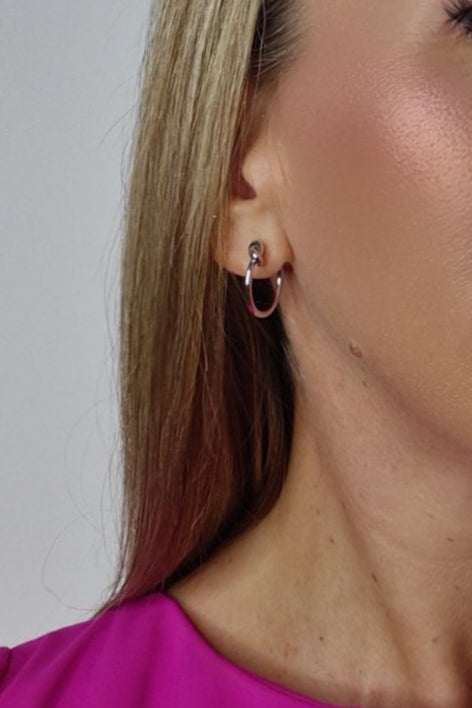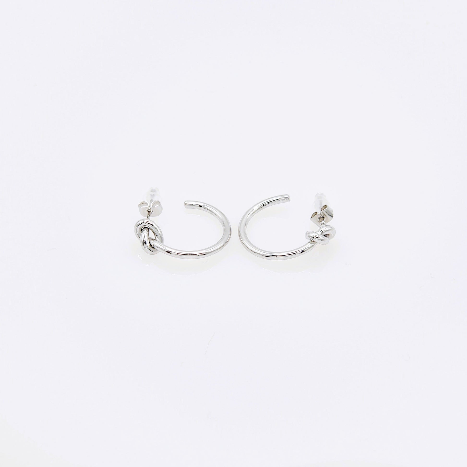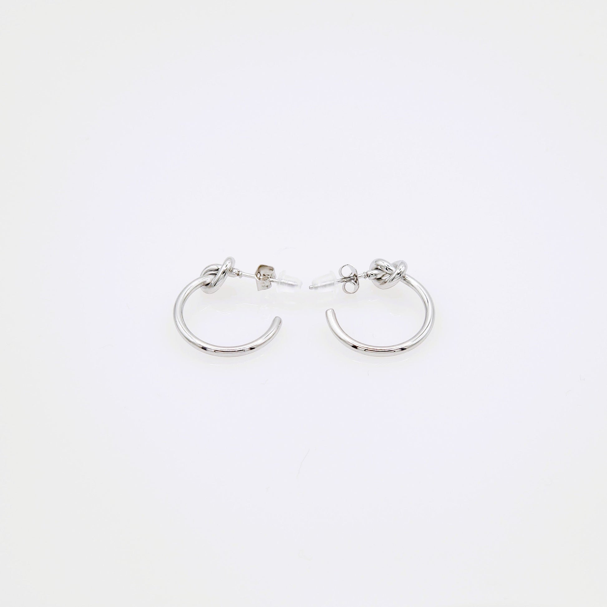 Pendientes de aro con detalle de nudo en acero inoxidable. Su diseño minimalista elegante representa unión, equilibrio y estilo atemporal.