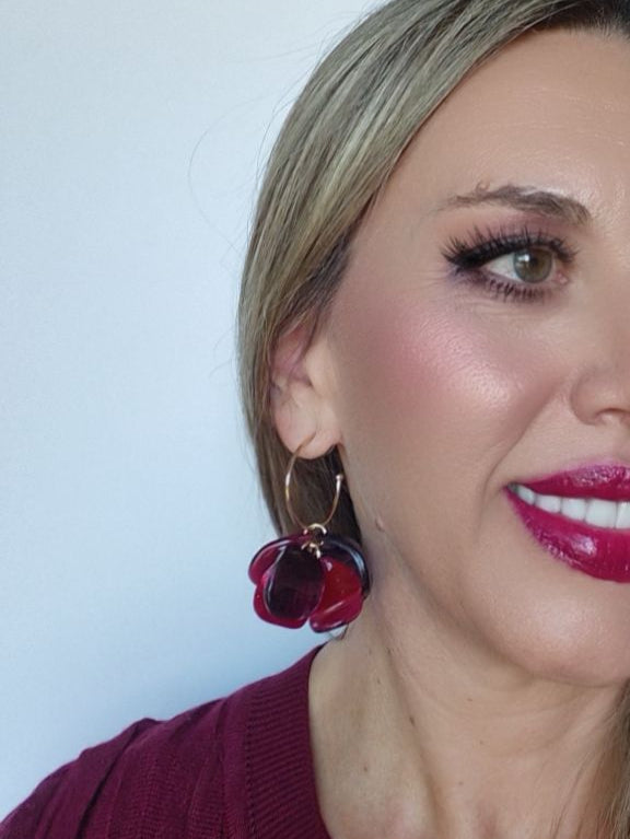 Inspirados en la delicadeza de las flores, estos pendientes combinan pétalos en tonos rojos y burdeos que parecen florecer en cada movimiento.