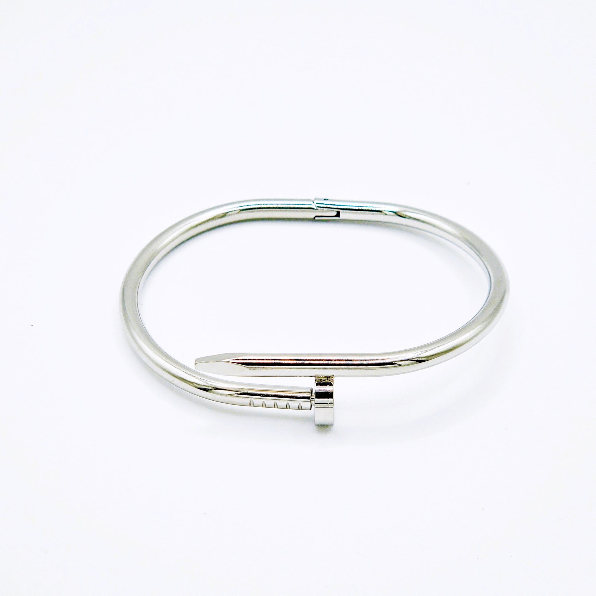 Nuestra Pulsera Clavo Plateada está fabricada en acero inoxidable, es moderna, elegante y perfecta para destacar en cualquier ocasión.