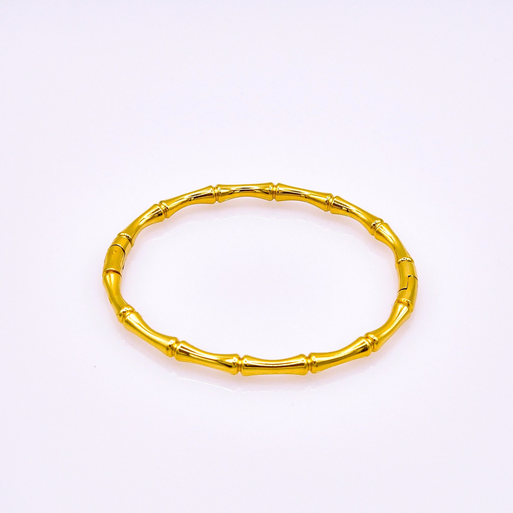 Elegante brazalete dorado. Su diseño sencillo pero distintivo lo hace ideal para usar solo o combinado con otras pulseras.