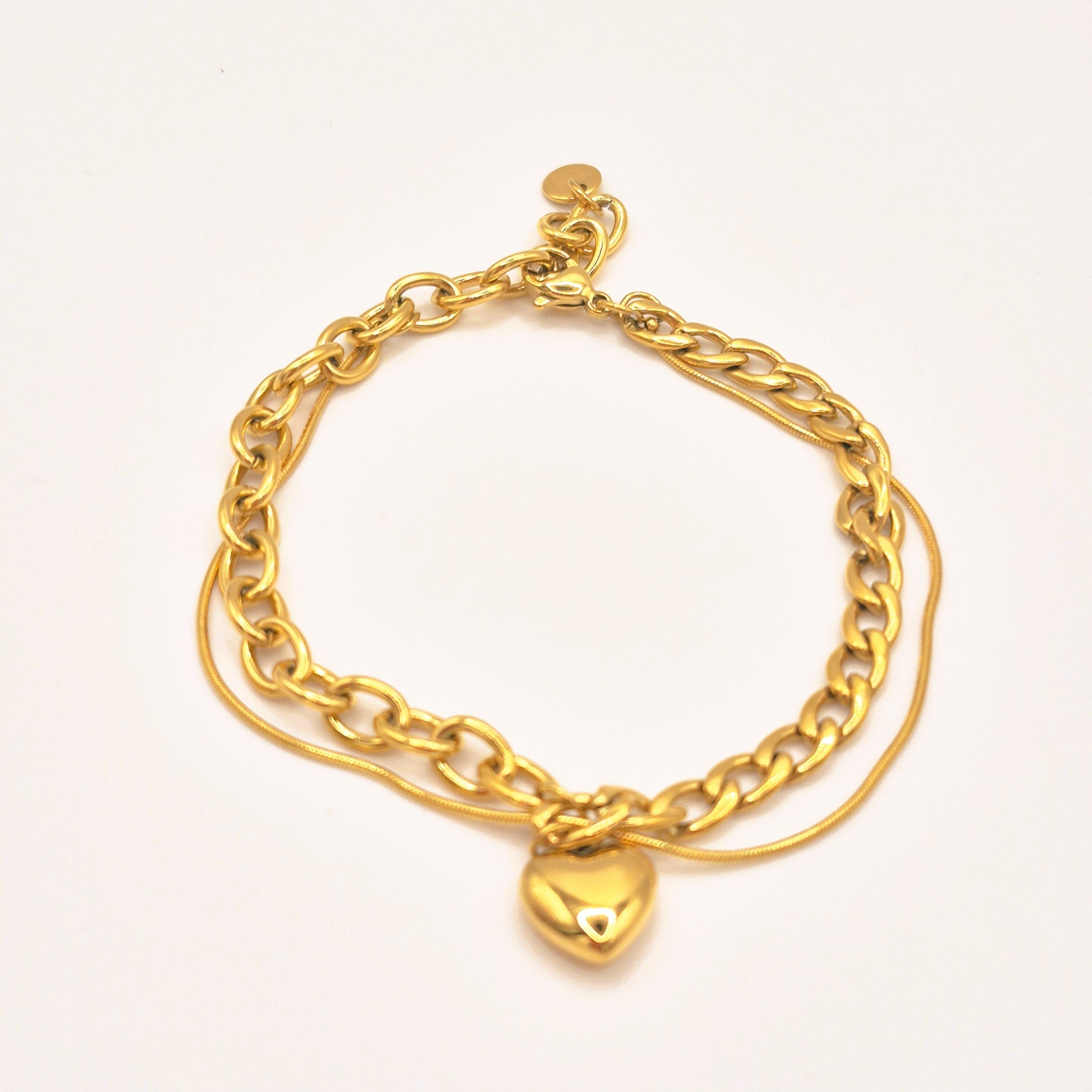 Pulsera de eslabones dorados con corazón calado y cierre de barra. Moderna, especial y con mucho corazón.