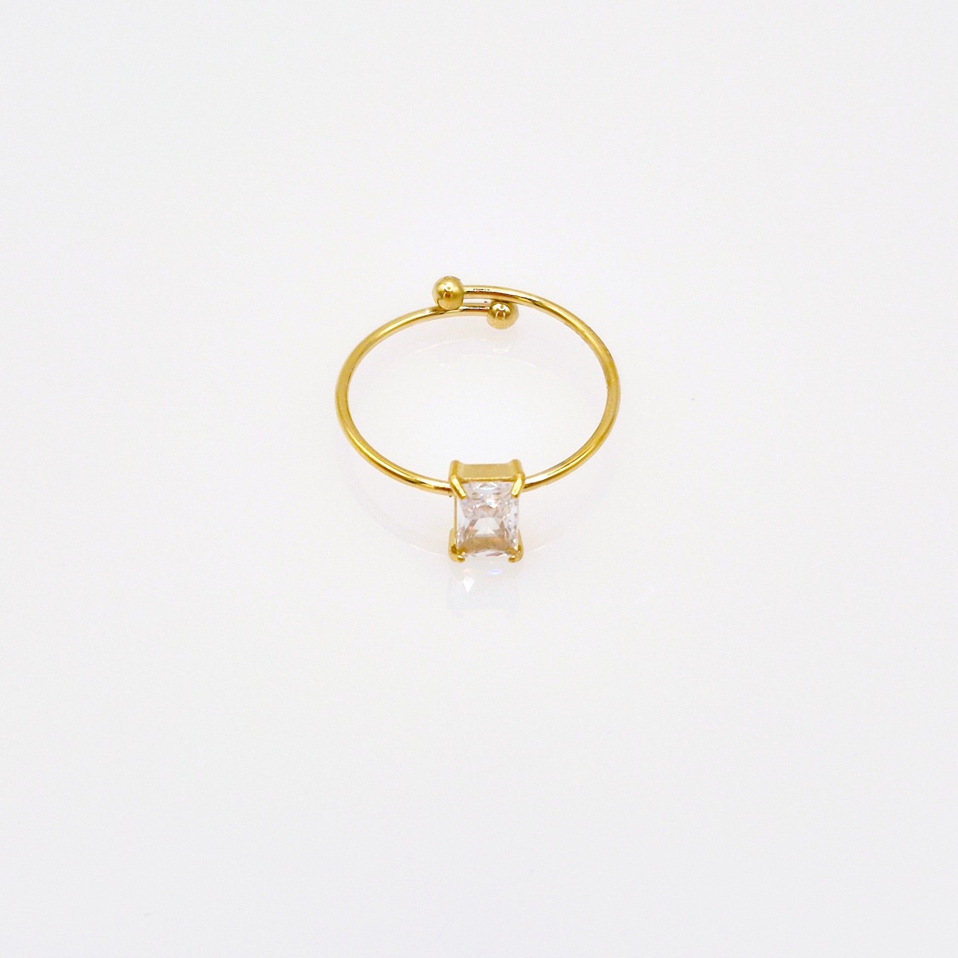 Anillo fino de acero inoxidable con pequeña piedra brillante. Un diseño elegante y sutil que añade un toque de luz a tu mano.